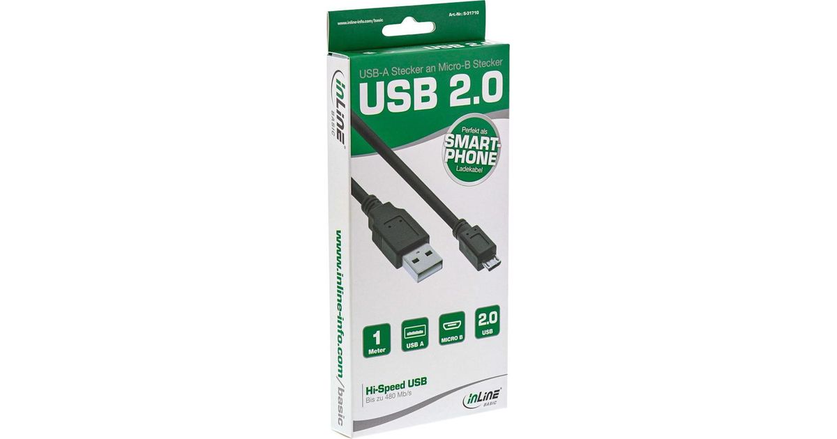 InLine S-31710 USB-kaabel 1 m USB 2.0 USB A Micro-USB B Must
