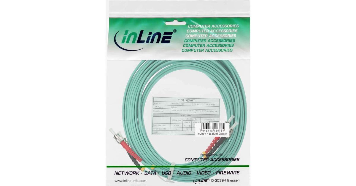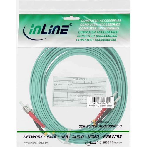 InLine ST/ST, 15 m kiudoptiline kaabel 2x ST OM3 Türkiis, Rohekassinine värv