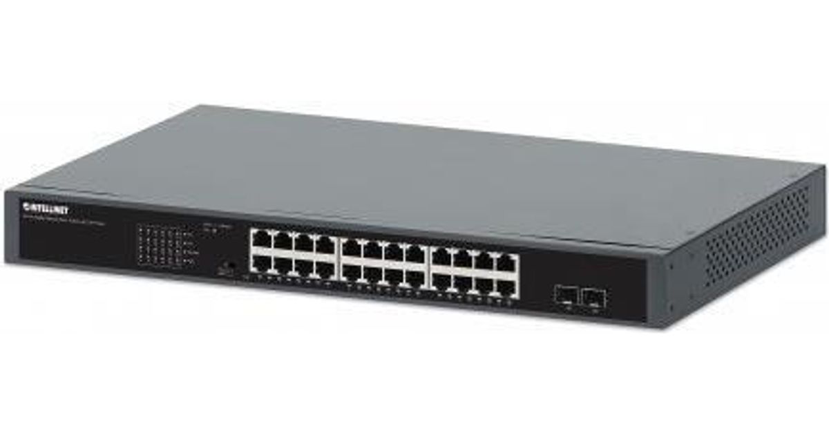 INTELLINET 24-Port Gigabit PoE+ Switch mit 2 SFP Port 19"