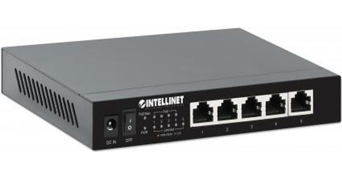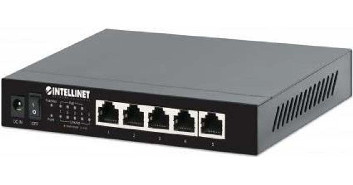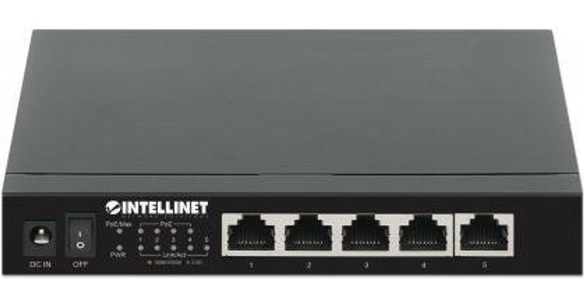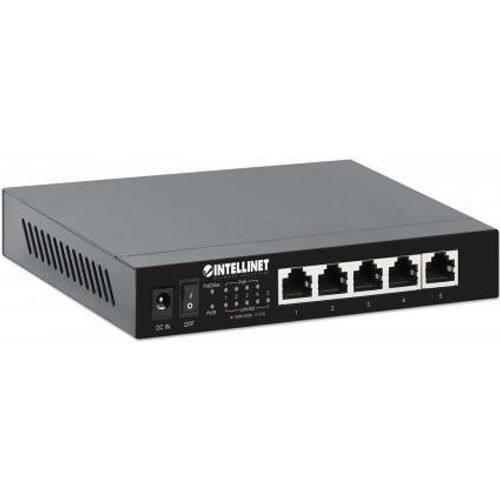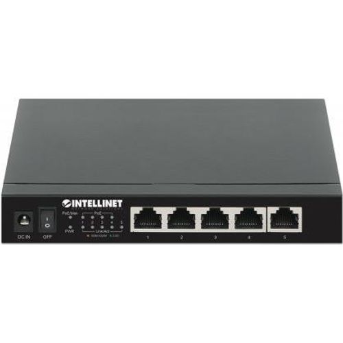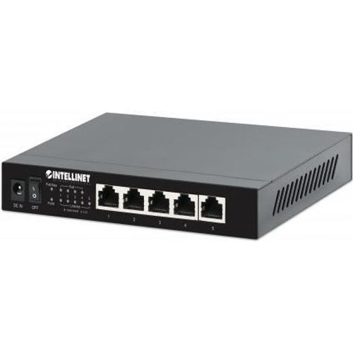 INTELLINET 5-Port 2,5G Ethernet PoE+ Switch Vier PSE PoE+ Ports, 10/100/1000/2500 Mbit/s auf allen Ports, 55 W PoE-Leistungsbudget, Unmanaged, Desktop-Format, optionale Wandmontage