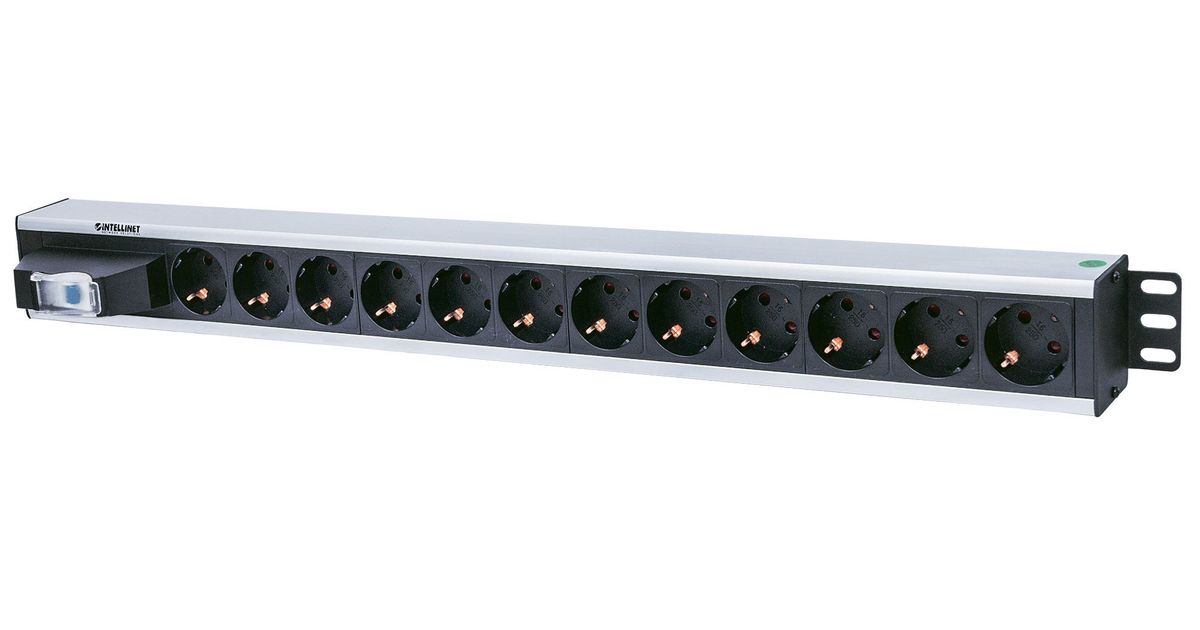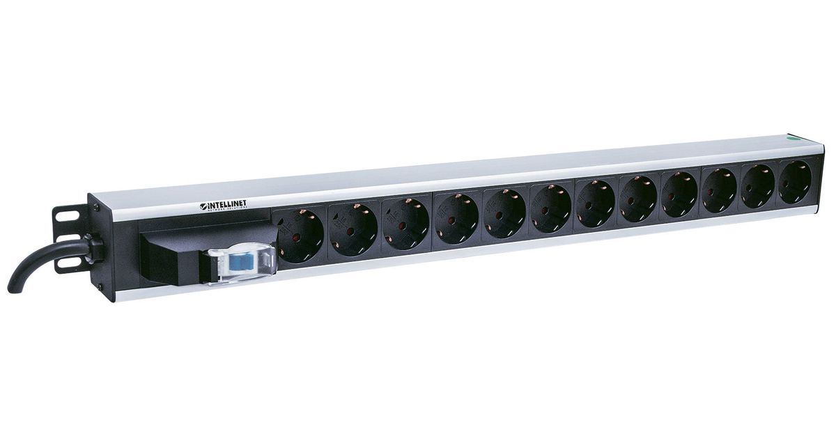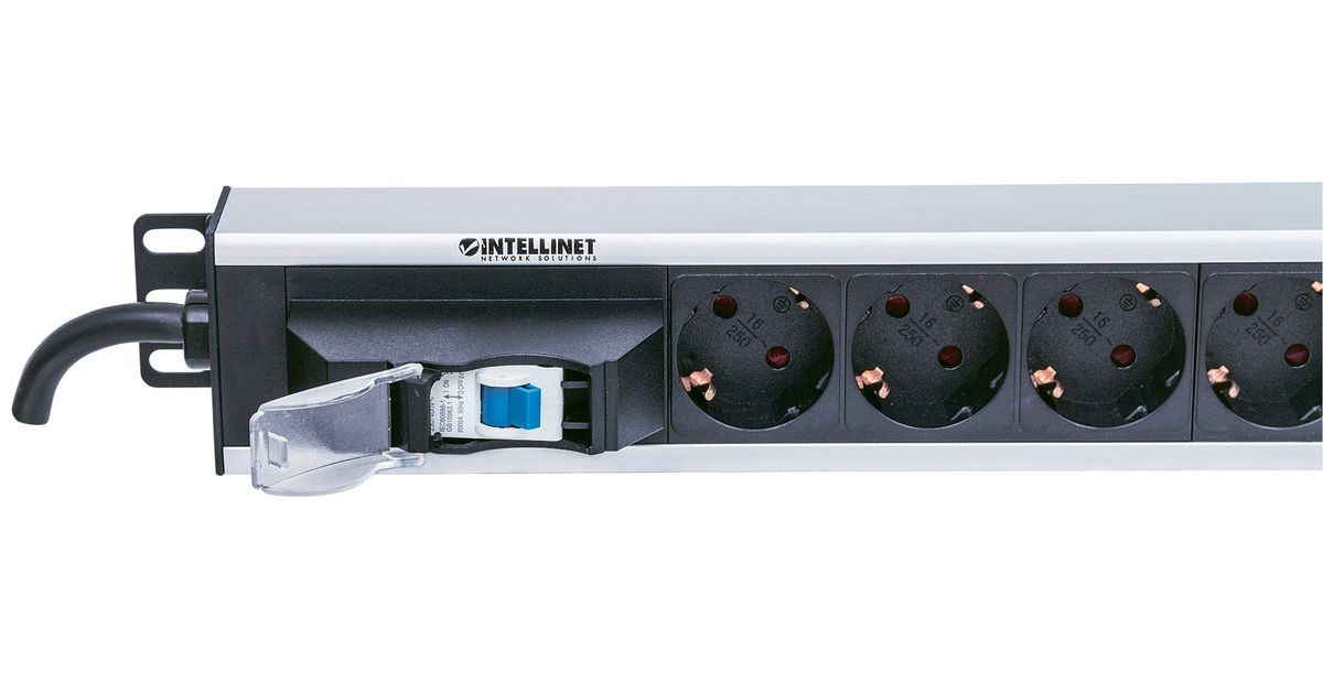 Intellinet 711449, Vertikaalne, Alumiinium, Must, Hall, 12 vahelduvvoolu kontakt, Tüüp F, 1,6 m