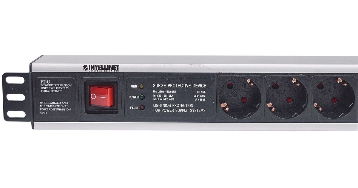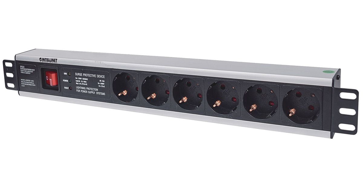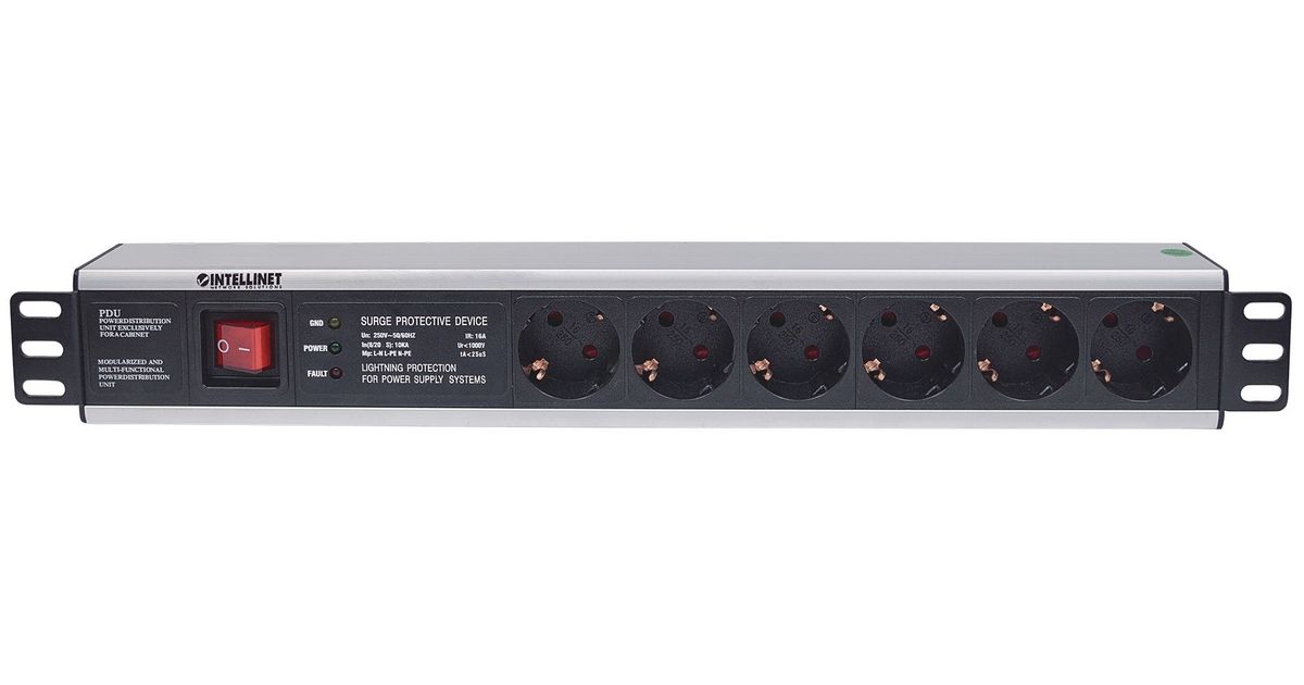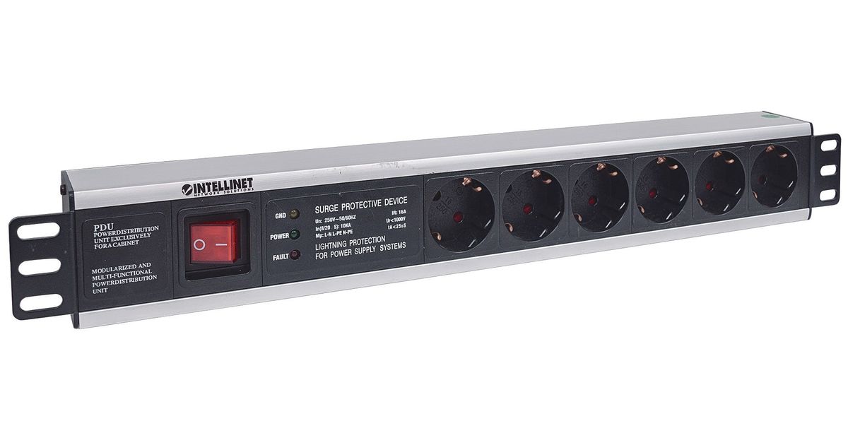 Intellinet 713962, 1.5U, Toitelatt, Alumiinium, Must, 6 vahelduvvoolu kontakt, 3 m