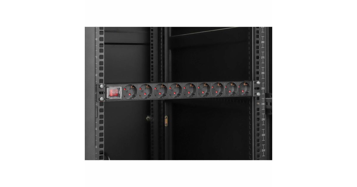 Intellinet 715133, 1U, Alumiinium, Must, 9 vahelduvvoolu kontakt, Tüüp F, Tüüp F