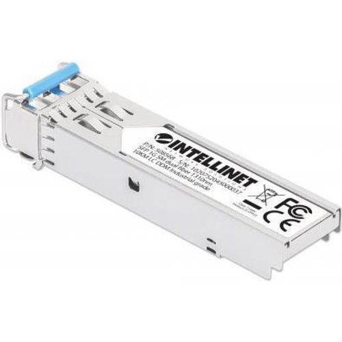 INTELLINET Gigabit SFP Mini-GBIC Industrie-Transceiver für LWL-Kabel 1000Base-LX (LC) Singlemode-Port, 10 km, MSA-konform für maximale Kompatibilität, silber (508568)