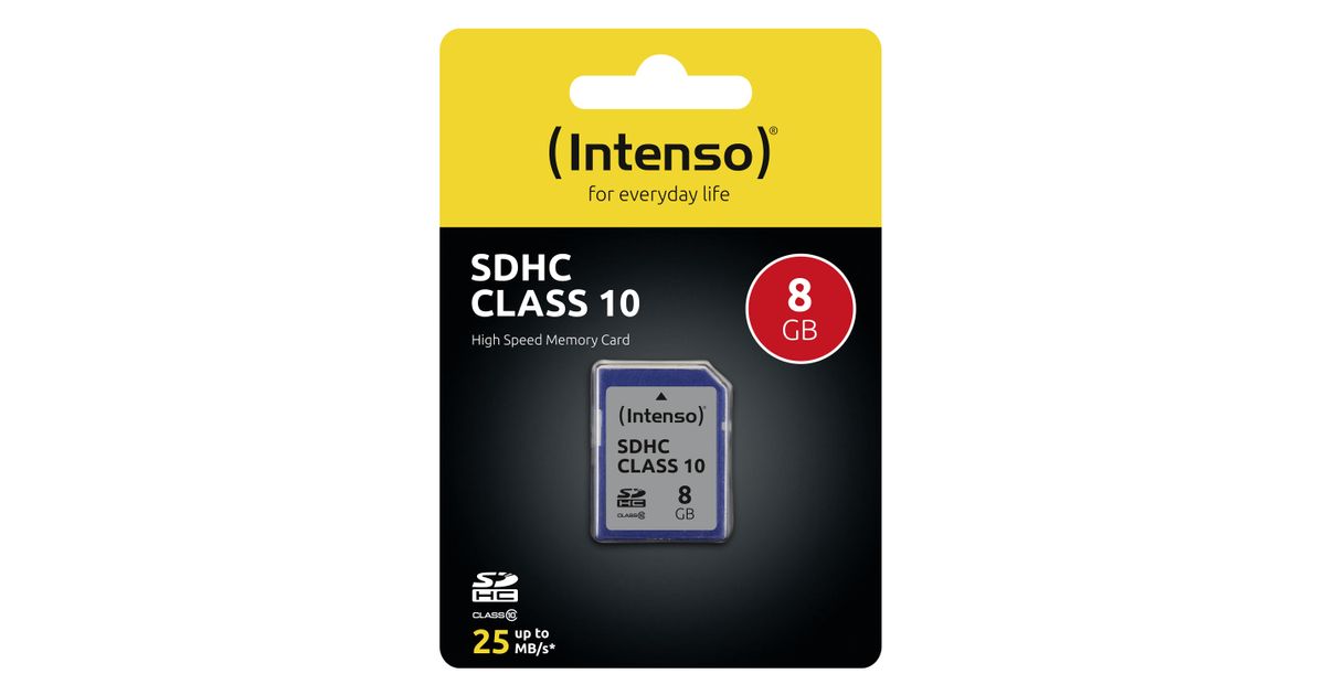 Intenso 3411460, 8 GB, SDHC, Klass 10, 25 MB/s, Löögikindel, Temperatuurikindel, Röntgenkiirekindel, Must