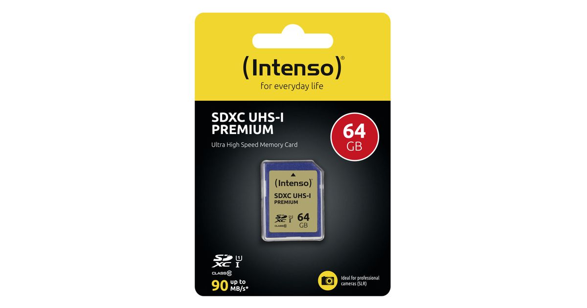 Intenso 3421490, 64 GB, SDXC, Klass 10, UHS-I, 90 MB/s, Class 1 (U1)