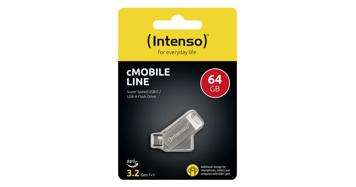 Intenso cMobile Line, 64 GB, USB Type-A / USB Type-C, 3.2 Gen 1 (3.1 Gen 1), 70 MB/s, Pöörleva liigendiga, Hõbe