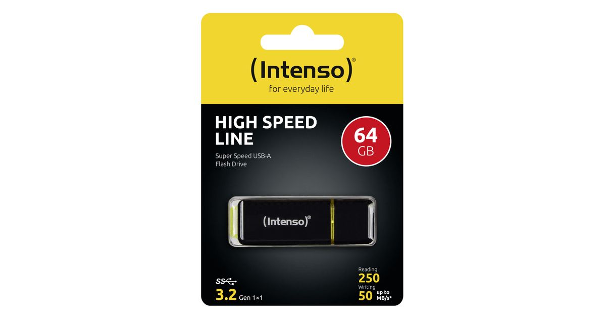 Intenso High Speed Line USB-välkmälu 64 GB USB tüüp A 3.2 Gen 1 (3.1 Gen 1) Must, Kollane
