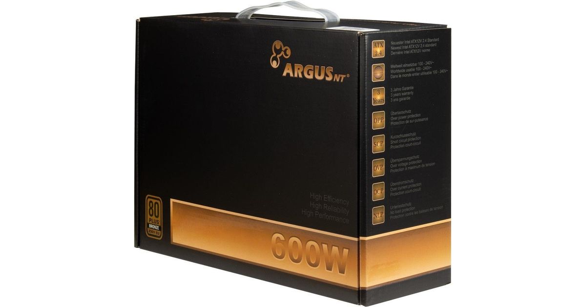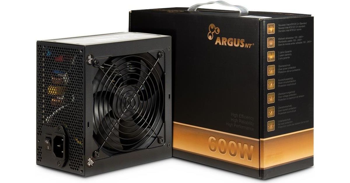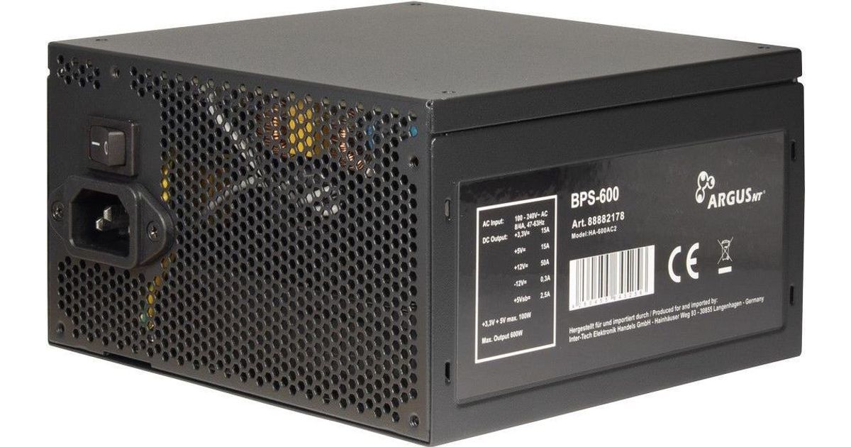Inter-Tech Argus BPS-600, 600 W, 100 - 240 V, 47 - 63 Hz, 8/4 A, 100 W, 520 W