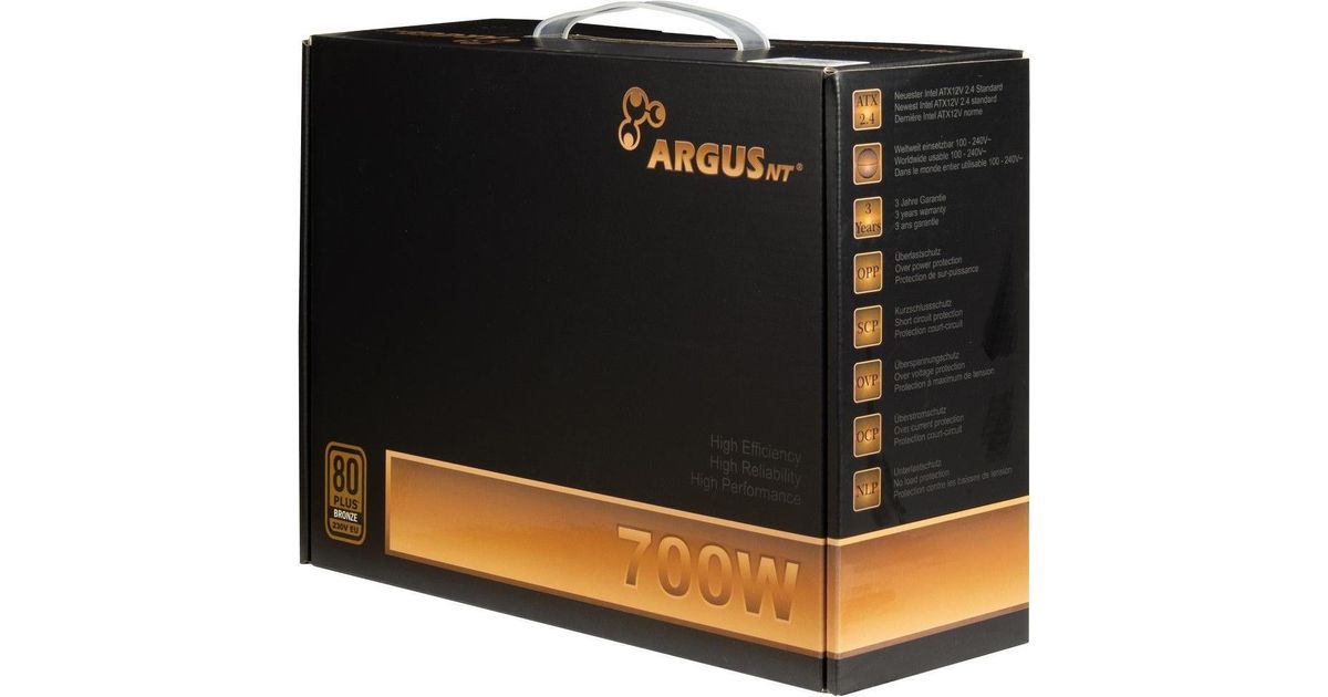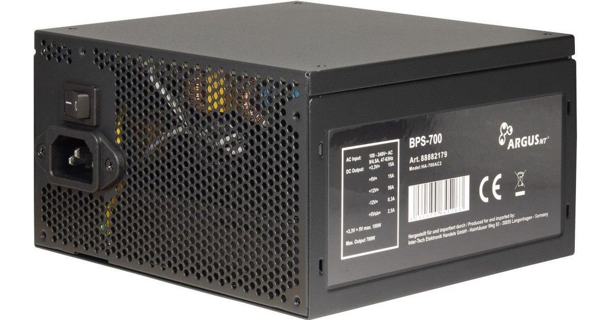 Inter-Tech ArgusNT BPS-700, 700 W, 100 - 240 V, 47 - 63 Hz, 9/4.5 A, 100 W, 620 W