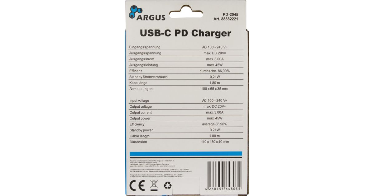 Inter-Tech PD-2045, Hoonesisene, Vahelduvvool, 20 V, Must