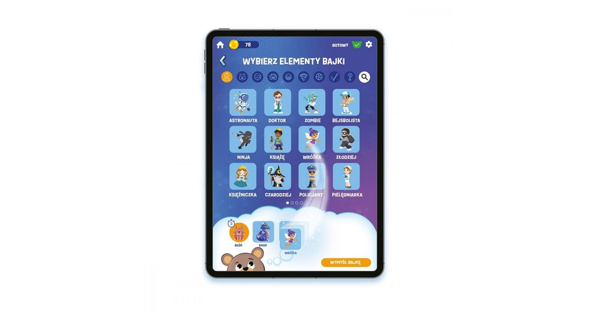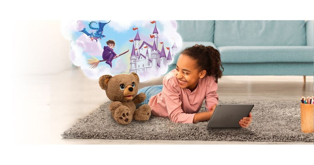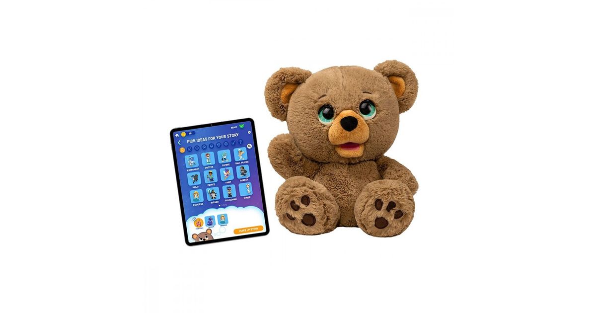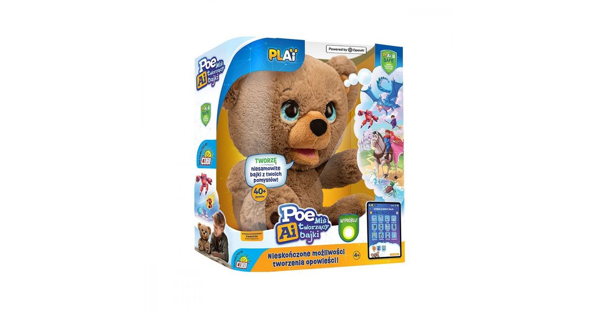 Interactive mascot Poe Ai - Teddy Bear Creating Fairy Tales
