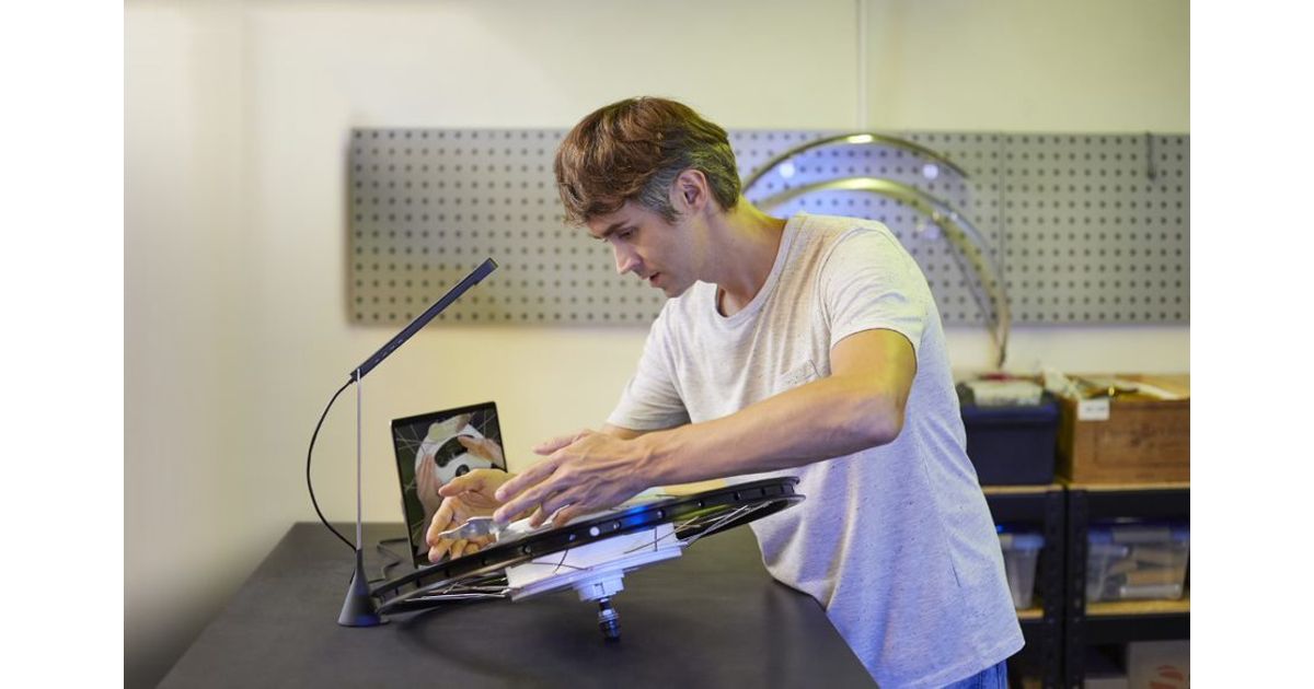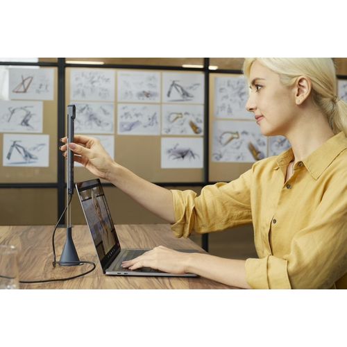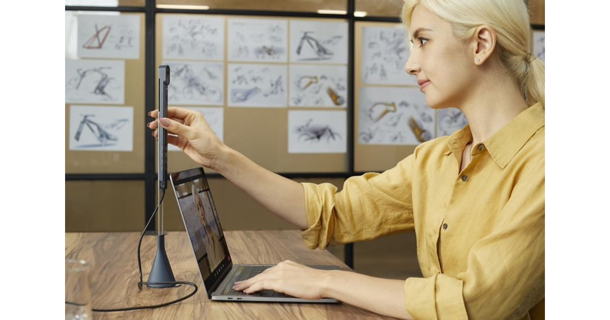 Schalten Sie während Ihres Online-Meetings jederzeit zwischen drei Kameramodi für Besprechungen auf Augenhöhe, Produktdemonstrationen und den Austausch von Dokumenten um.