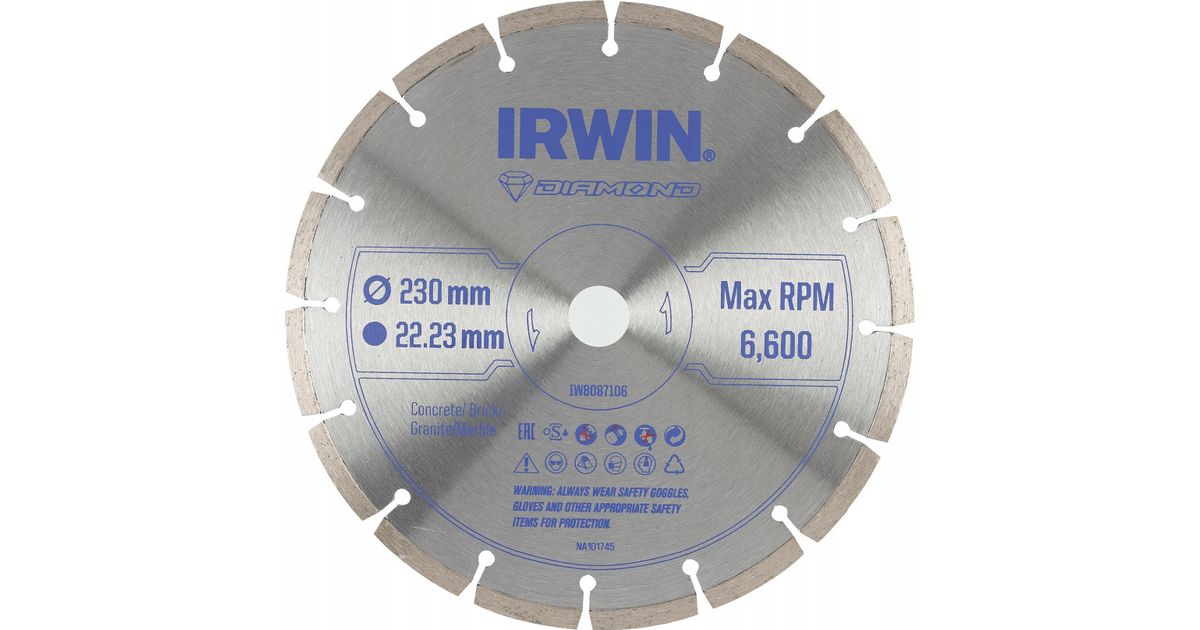 Irwin IRWIN DIAMOND DISC 230mm x 22,23mm / SEGMENTEERITUD betooni, tellise, graniidi ja marmori jaoks