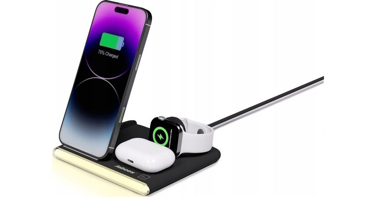 Jabees PowerGlow 4in1 QI laadija telefonile nutikell kõrvaklappidele LED lamp / must