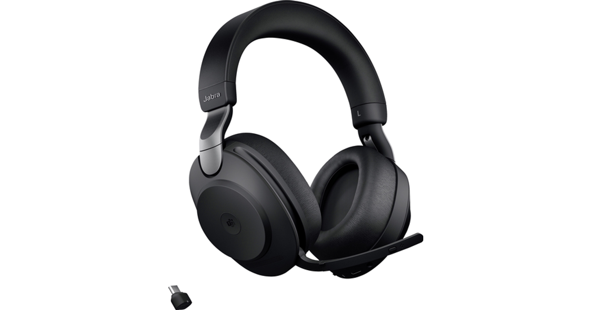 Jabra Evolve2 85 Ms Phone Over-Ear Headset Bluetooth® (1075101), Corded (1075100) Stereo Black Microphone Noise Cancelling Volume Control, Battery Indicator,