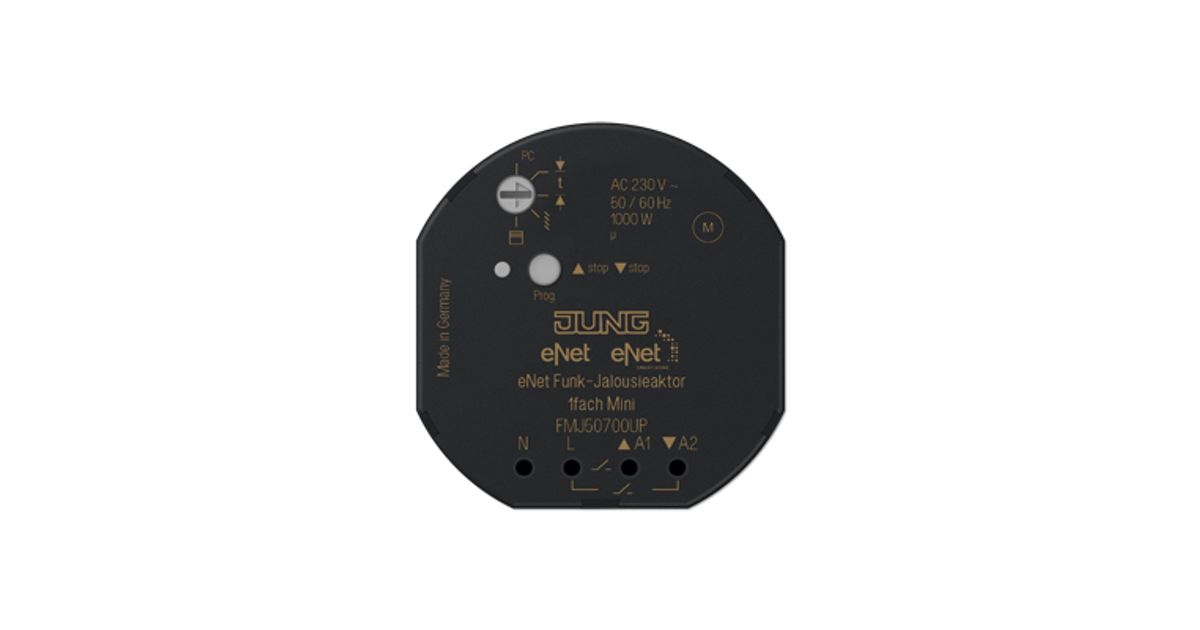 JUNG FM J 50700 UP, Kardina/aknakatte ajam, DIN-siinile kinnitatud, 868 MHz, 100 m, Must, 1000 W