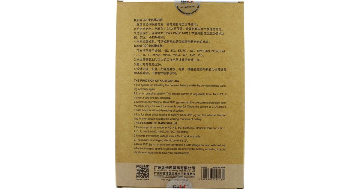 Kaisi - K-9201 - Apple IPhones 4G,4S,5G,5S/5C - Akku /Battery Lader (K-9201)