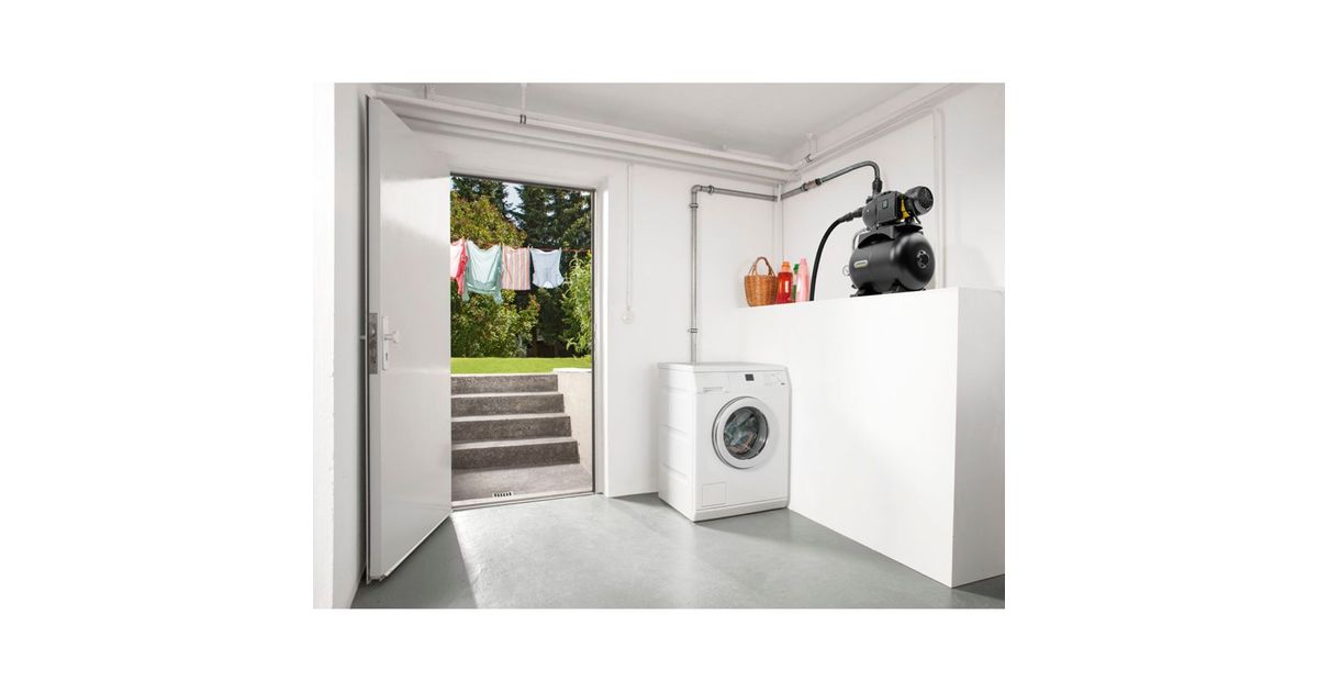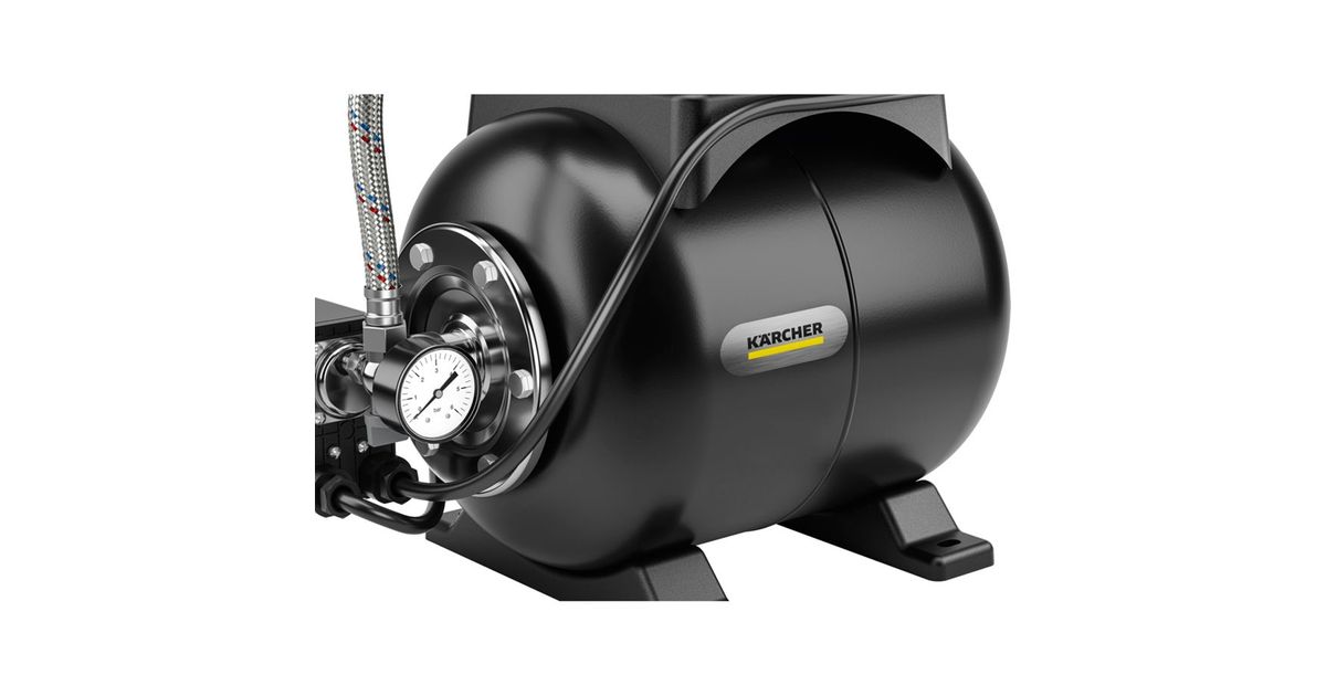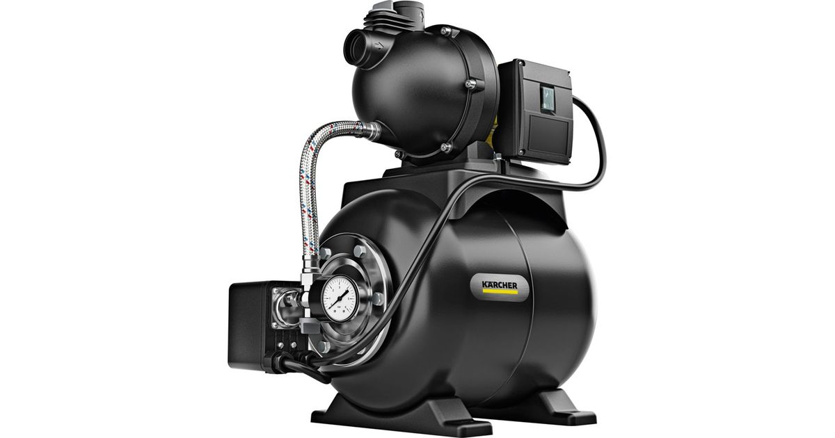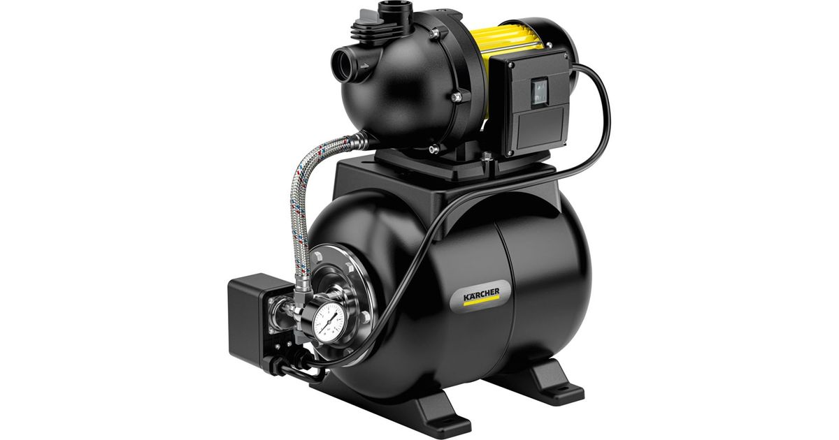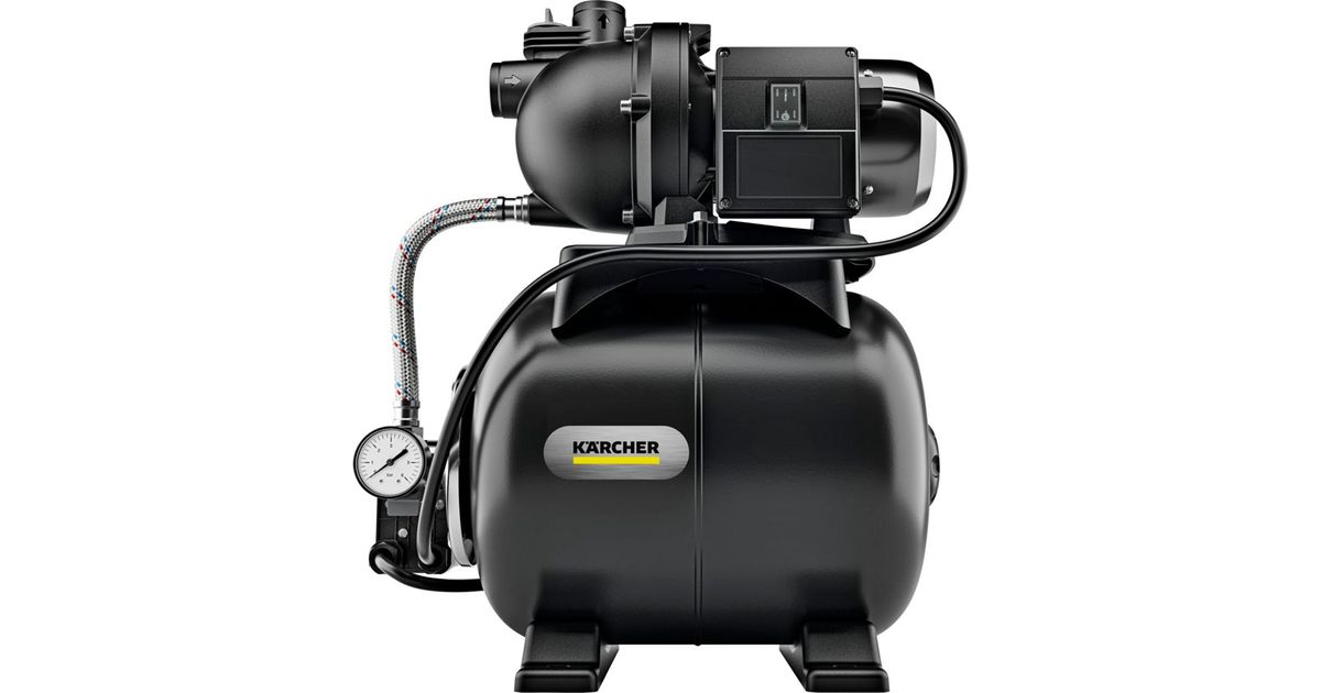 Cost-effective service water for washing machine, toilet flushing etc.: The BP 3.200 Home domestic waterworks impresses with proven Kärcher quality and ensures the domestic water supply. Alternative water sources such as wells or cisterns can be tapped and used reliably and conveniently - fully automatically, with sufficient pressure and impressive delivery capacity. The BP 3.200 Home switches on automatically as required and then switches off again. A non-return valve and integrated pressure indicator are just as much a part of the comprehensive equipment as the pressure compensation tank (19 liters) and thermal protection. The carrying handle enables convenient handling and transportation. The pump feet can be fixed to the ground with screws to ensure that the pump stands securely. The BP 3.200 Home can be conveniently operated using the on/off switch directly on the pump. High-quality components such as the stainless steel flange and motor shaft not only look good, but also promise an extra long service life.