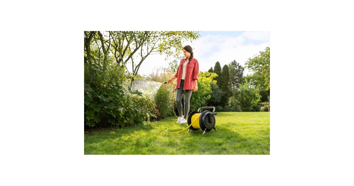 Mobile use meets compact storage: The hose carrier ensures convenient watering and space-saving storage of the garden hose. The complete set includes 10 meters of garden hose, couplings, tap adapters and a garden sprayer. With the help of the free-running hand crank, the garden hose can be rolled up effortlessly and can be stored neatly and carefully without kinks or annoying tangles. The product also impresses with its compact design, ergonomic handle for easy transportation and high stability thanks to its low centre of gravity. The product is also UV and frost-proof. Kärcher hose storage units are characterized by their robustness and durability. The hose carrier is supplied fully assembled.