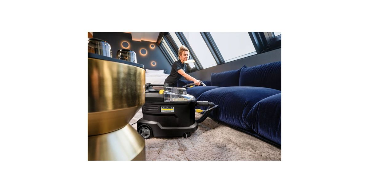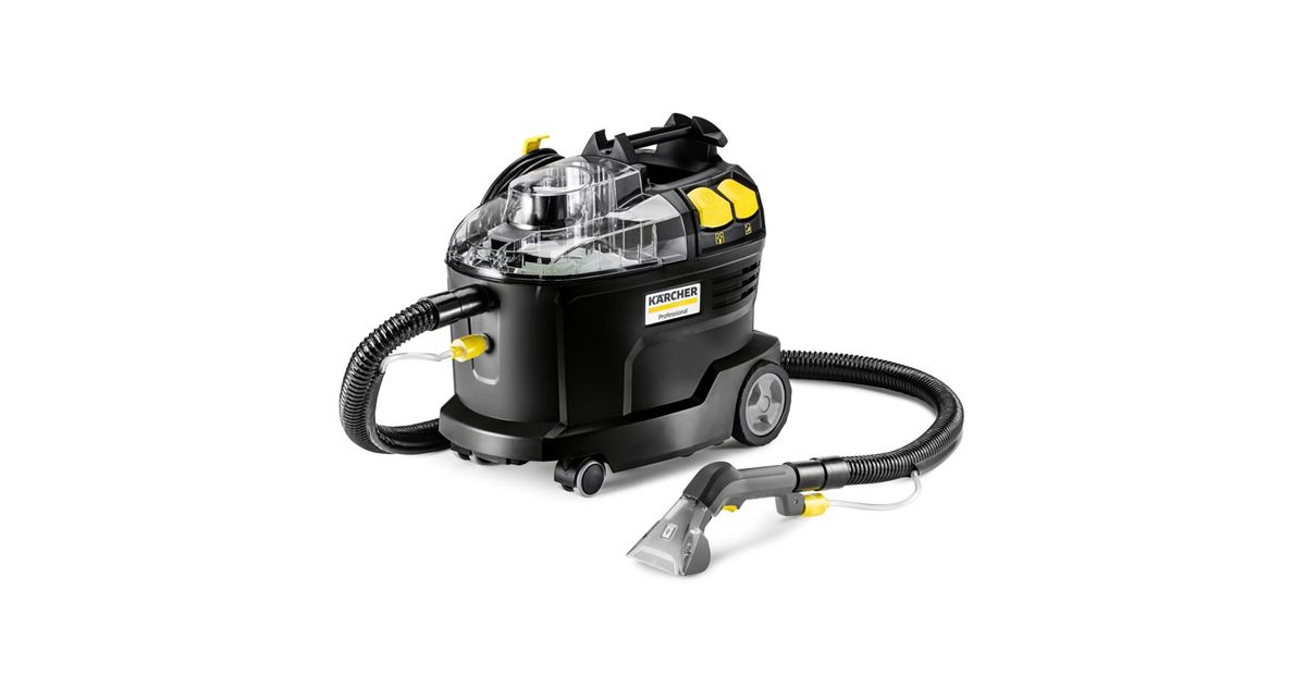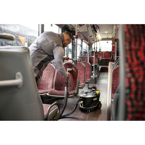 Robust, durable, efficient: the Puzzi 8/1 vacuum cleaner from Kärcher impresses with outstanding and hygienic cleaning results when it comes to cleaning upholstery and removing stains on textile surfaces. The compact spray extraction device sprays the cleaning solution deep into the textile fibers and then sucks them off, including the dissolved dirt. This very good return suction performance also ensures fast drying and retreadability of the textile surfaces - ideal for the high demands of cleaning professionals in the hotel and catering industry or in vehicle interior cleaning. The standard, extra-short upholstery nozzle is also suitable for comfortable, ergonomic cleaning of narrow areas. Thanks to its very low weight and ergonomic carrying handle, the vacuum cleaner can be easily transported with one hand. Large push-buttons that can be operated by hand or foot increase user comfort. For a better view of the dirt fleet, the device cover and hand nozzle are transparent.