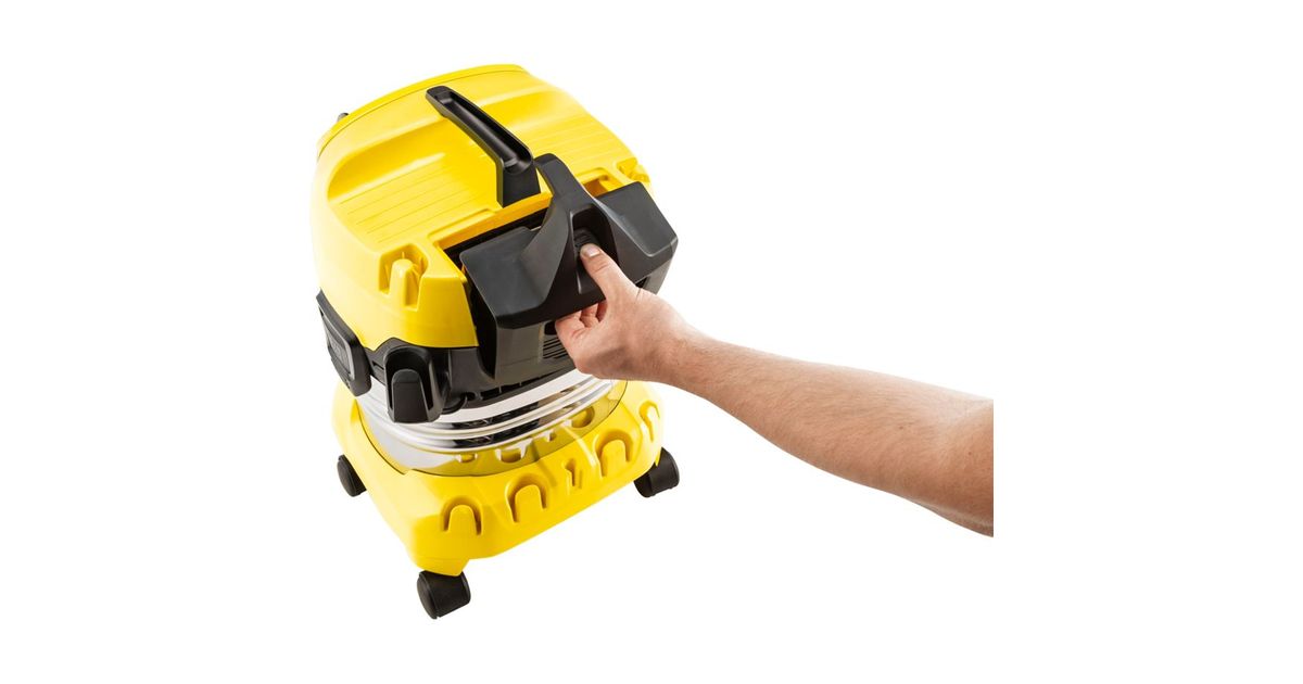 Super-absorbent and energy-efficient performance, with a power consumption of only 1000 watts. Thanks to the optimally coordinated floor nozzle, suction hose and appliance, you achieve the best cleaning results and remove wet, dry, fine or coarse dirt non-stop without changing the filter. The WD 4 S V-20/5/22 is equipped with a robust and shock-resistant 20-litre stainless steel container, a 5-metre cable and 2.2-metre suction hose, flat-fold filter and fleece filter bag. Thanks to special technology, the filter of the wet/dry vacuum cleaner can be removed easily and quickly within seconds - without any contact with dirt. The removable handle allows accessories to be attached directly to the suction hose. The hose can be stored on the unit head to save space. There is also space on the unit head to store small parts at any time. Pipes and floor nozzle are also quickly and conveniently parked in the parking position provided on the bumper. Further advantages are the "Pull & Push" closure system for easy opening and closing of the container and an ergonomically shaped carrying handle for comfortable transport of the appliance.