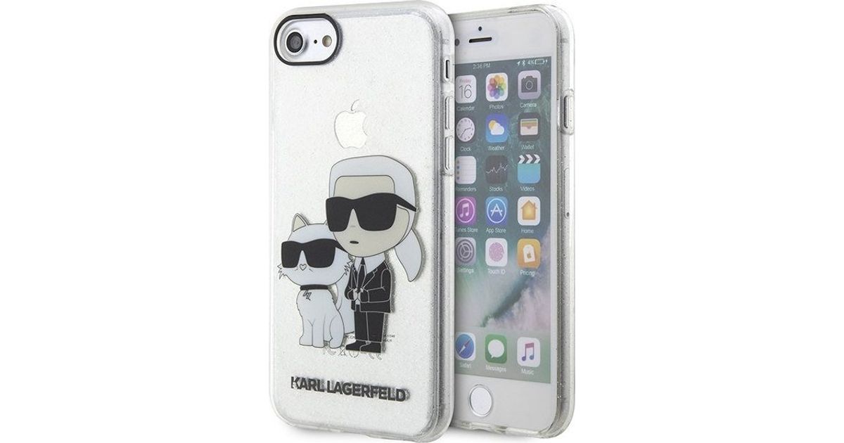 Karl Lagerfeld Karl Lagerfeldi ümbris KLHCI8HNKCTGT Apple iPhone SE 2022/SE 2020/8/7 läbipaistev kõvaümbris Gliter Karl&Choupette