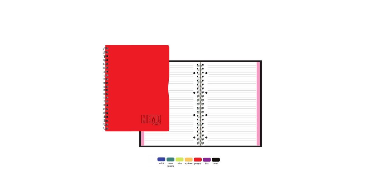 Kaustik A4 80l jooneline Memo Colour, värvilised lehe servad, spiraalköide, rebitav + augud, värvilised plastkaaned