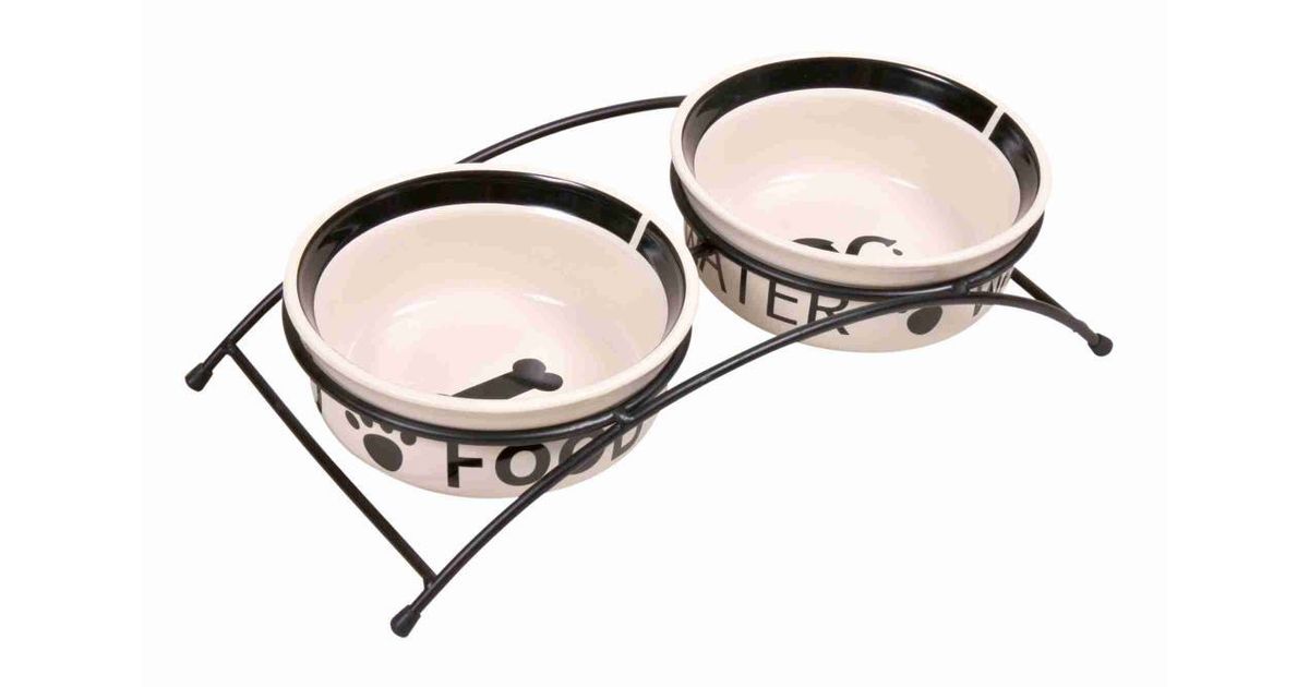 Keraamilised kausid tõstetud alusel Eat on Feet, 2 × 0.6 l/ø 15 cm, valge/must