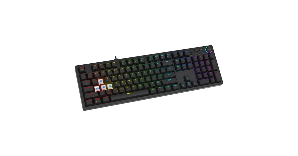 STYX is a full-size keyboard with a complete key layout, including a numeric keypad and dedicated multimedia keys. This gives you maximum functionality whether youre gaming, working, or editing media. An additional advantage is the multifunctional knob, which lets you adjust volume and lighting without using key shortcuts.