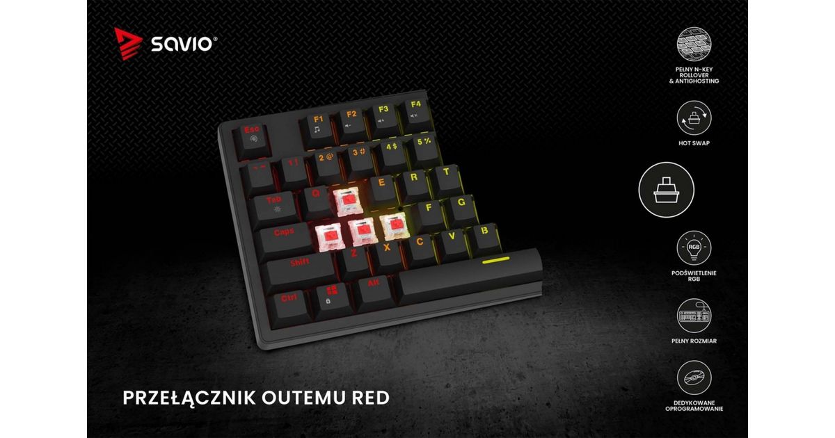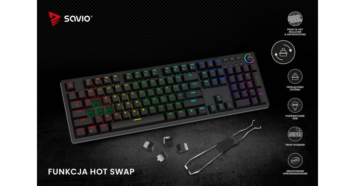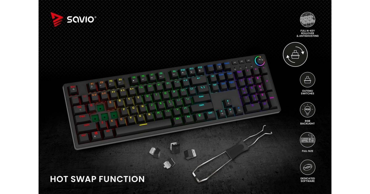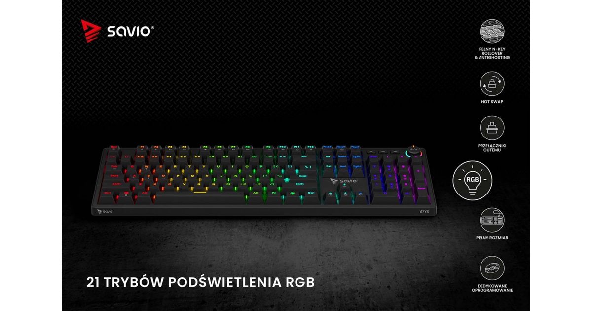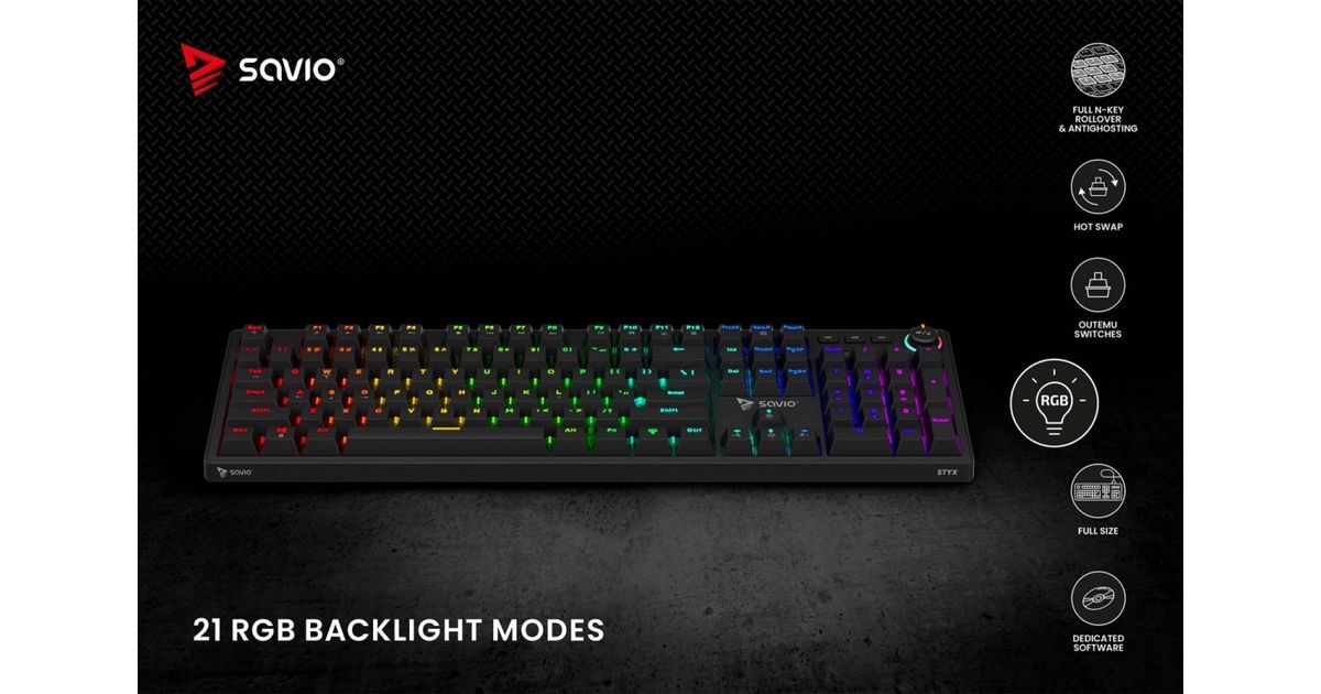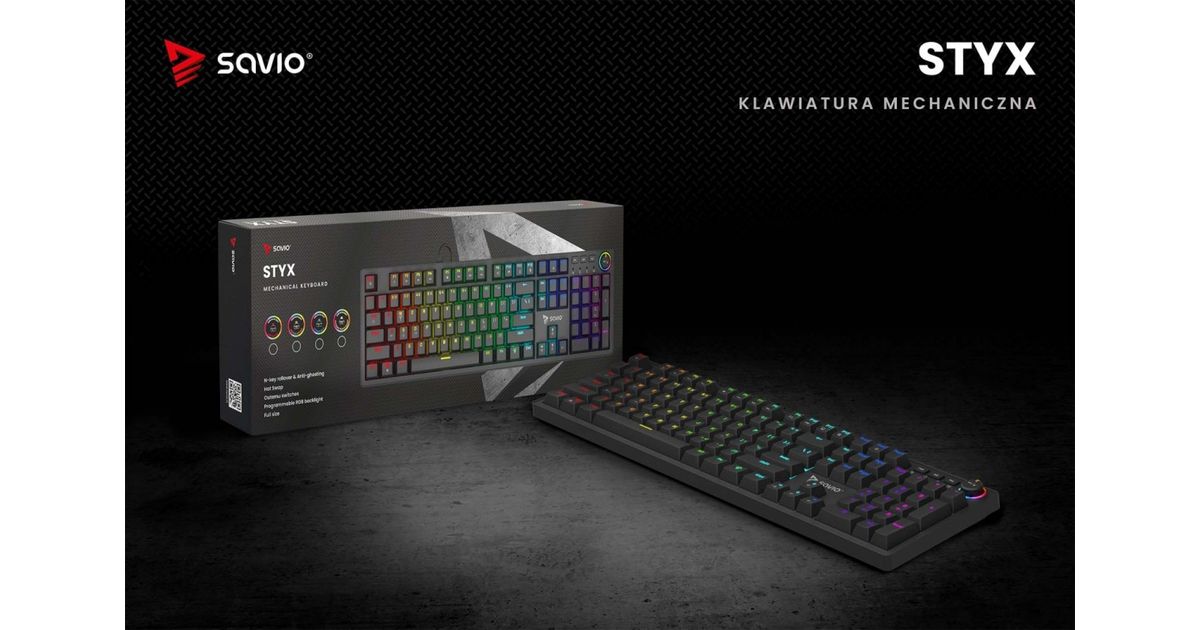 Savio STYX is a full-size mechanical keyboard created for gamers and professionals who dont accept compromises. It combines everyday comfort with gaming-grade performance and striking design. With rich personalization, high durability, and modern features, STYX excels both in gameplay and at work.