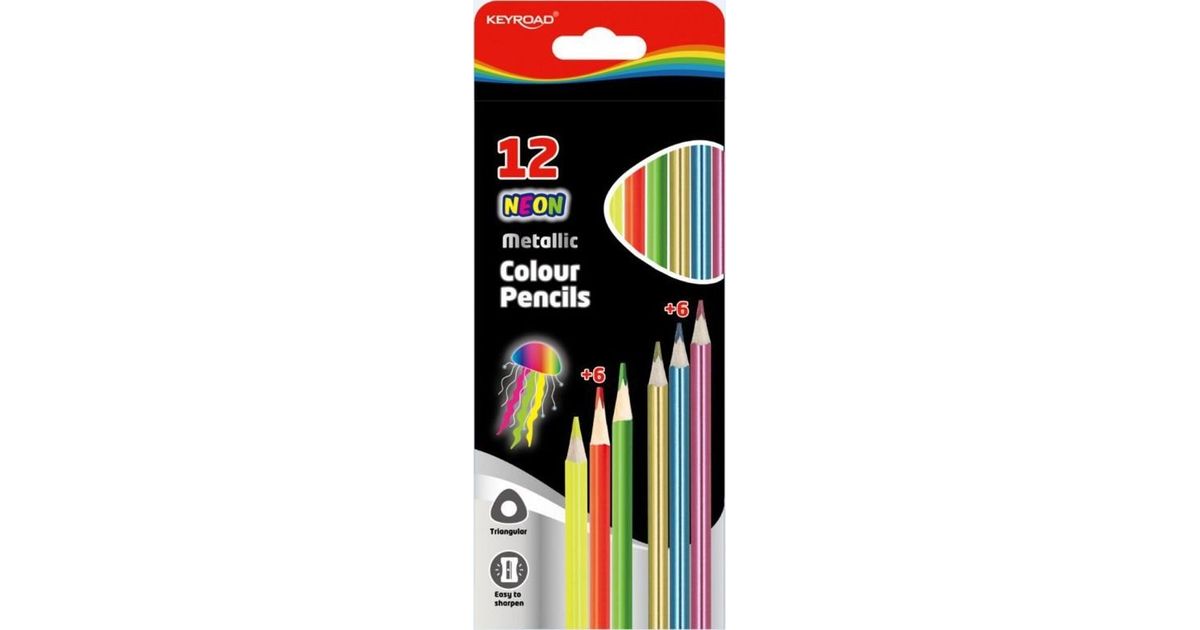 Keyroad Kredki Ołówkowe Keyroad, Trójkątne, Metaliczne I Neonowe, 12Szt., Mix Kolorów