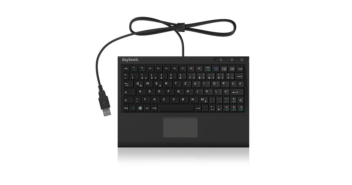 KeySonic ACK-3410, Mini, USB, Membraaniga klahvlüliti, Must