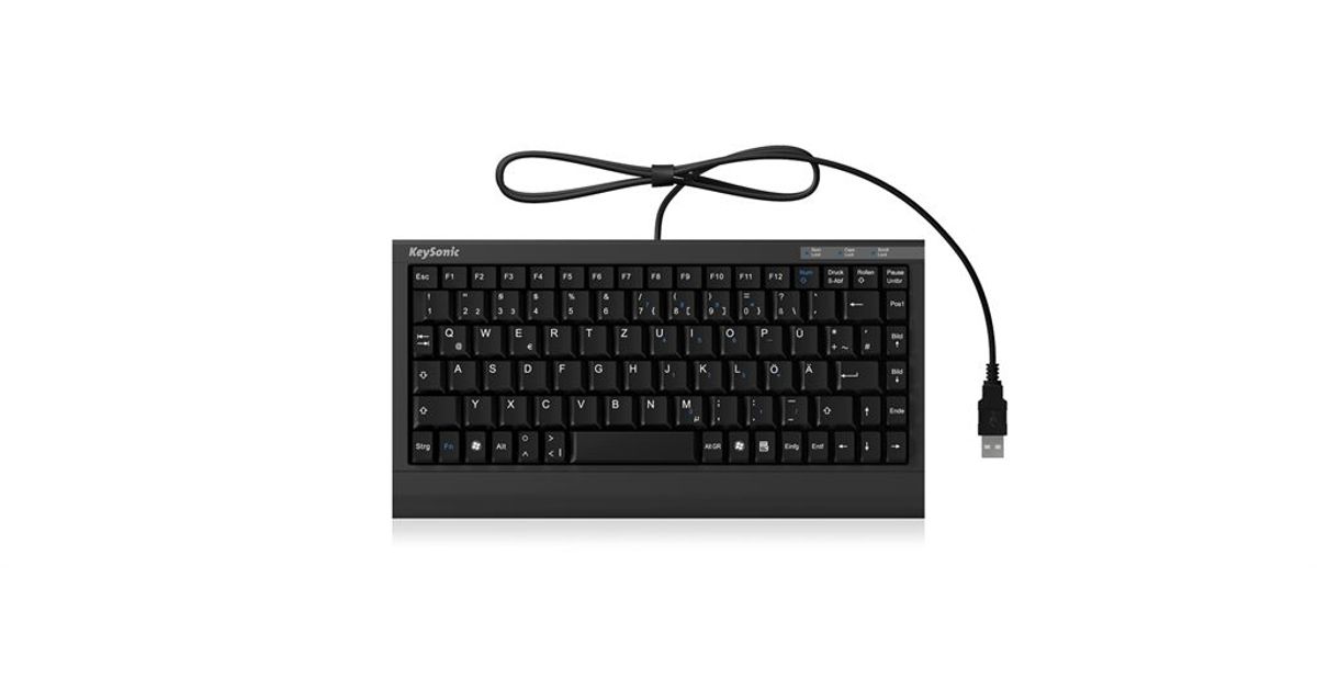 KeySonic ACK-595 C+, Mini, Juhtmega ühendatud, USB, Must