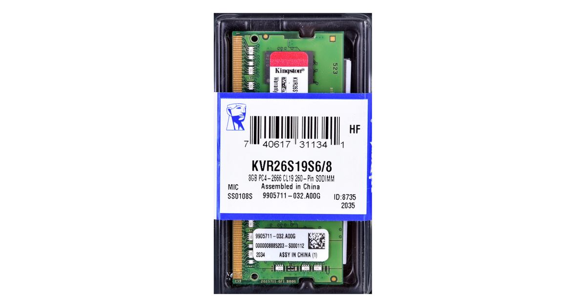 Kingston Technology KVR26S19S6/8, 8 GB, 1 x 8 GB, DDR4, 2666 MHz, 260-pin SO-DIMM