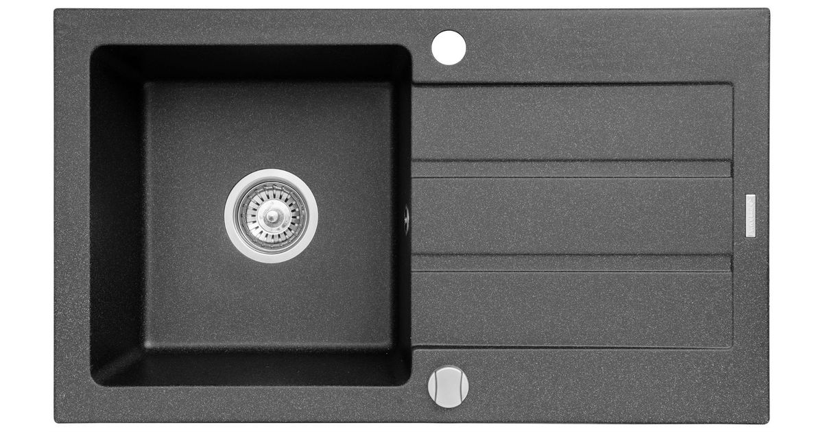 Kitchen sink single bowl with drainer Maidsinks Promo 76x44 1B 1D E070006801 czarny (Pyragranite; Black speckled)