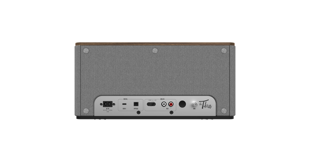 Incorporating luxury materials such as real wood veneer and tactile switches and knobs, The Three Plus Heritage Inspired tabletop speaker blends the acoustics and classic design legacy of Paul W. Klipsch with the latest technologies available today.