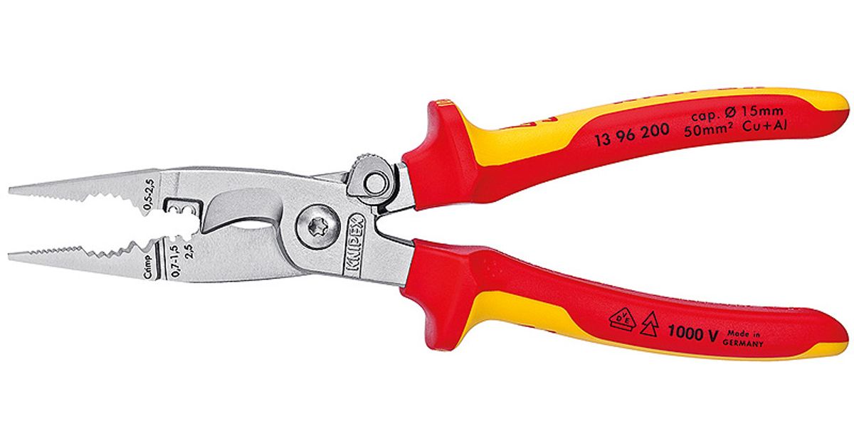 Multifunktsionaalsed tangid elektripaigalduse jaoks; lamedate ja ümmarguste materjalide haaramiseks, painutamiseks, kraatide eemaldamiseks, kaabli lõikamiseks, eemaldamiseks ja mähiste krimpimiseks.