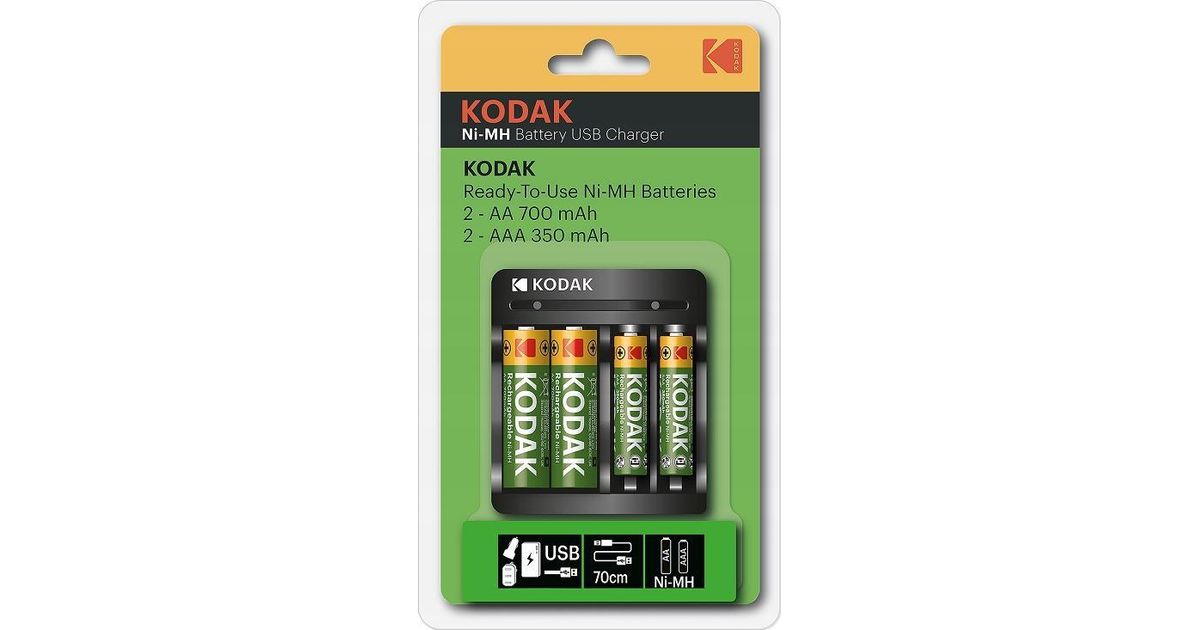 Kodaki laadija Kodak USB laadija + 2x Aa 750mah aku + 2x Aaa 300mah