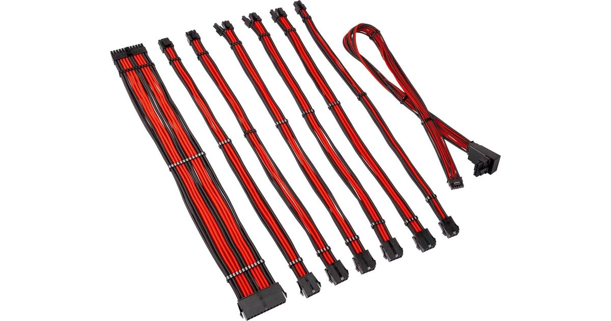 Kolink Core Pro punutud kaabli pikenduskomplekt 12V-2x6, tüüp 2 – tumemust/võidusõidupunane