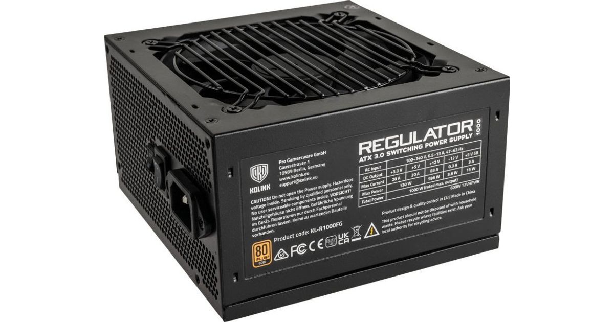 Kolink Regulator 80 PLUS Gold toiteplokk, ATX 3.0, PCIe 5.0, modulaarne - 1000 vatti