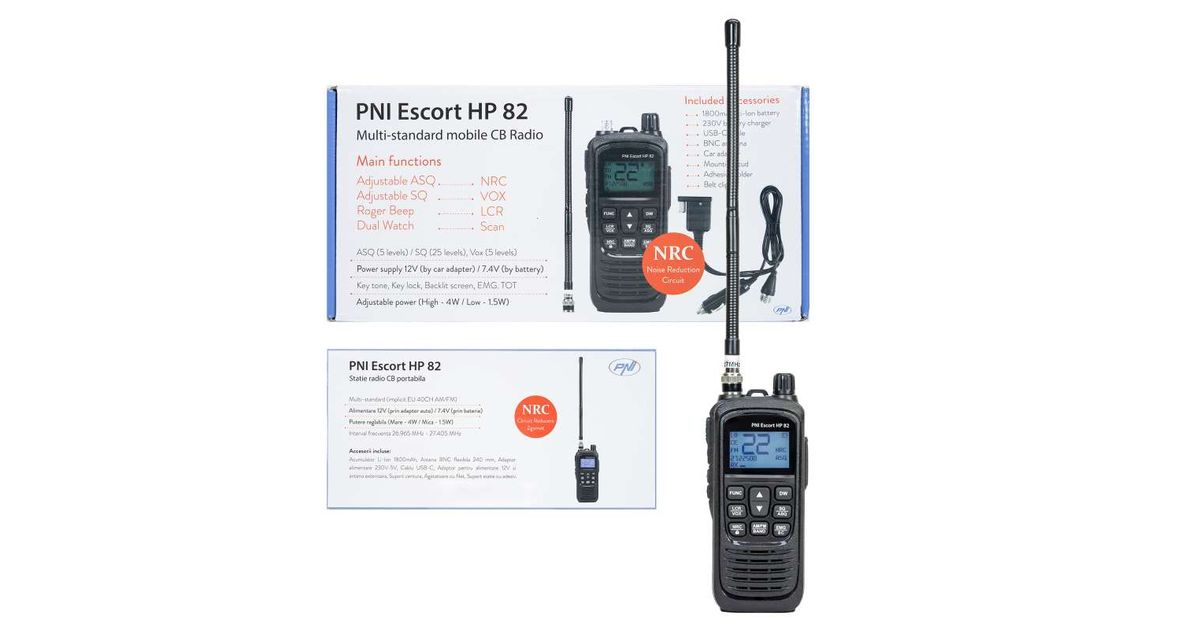 Komplekt Kaasaskantav CB raadiojaam PNI Escort HP 82, multi standard, 4W, 12V, AM-FM CB antenniga PNI LED 2000