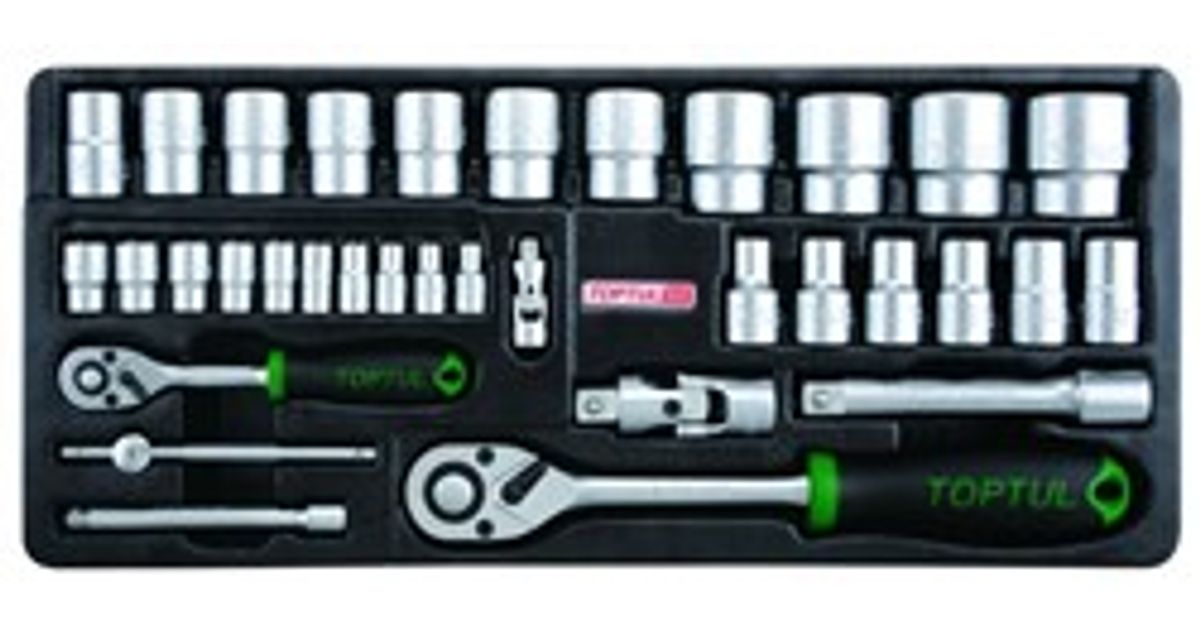 Komplekt tööriistakäru jaoks, padruni mõõt: 1/2, 1/4", B3, plastist, tööriistade arv: 34 tk, 6PT padrun(id) / käepide(d) / narre(d) / pikendusriba (d) / universaalliigend (id):, 3,