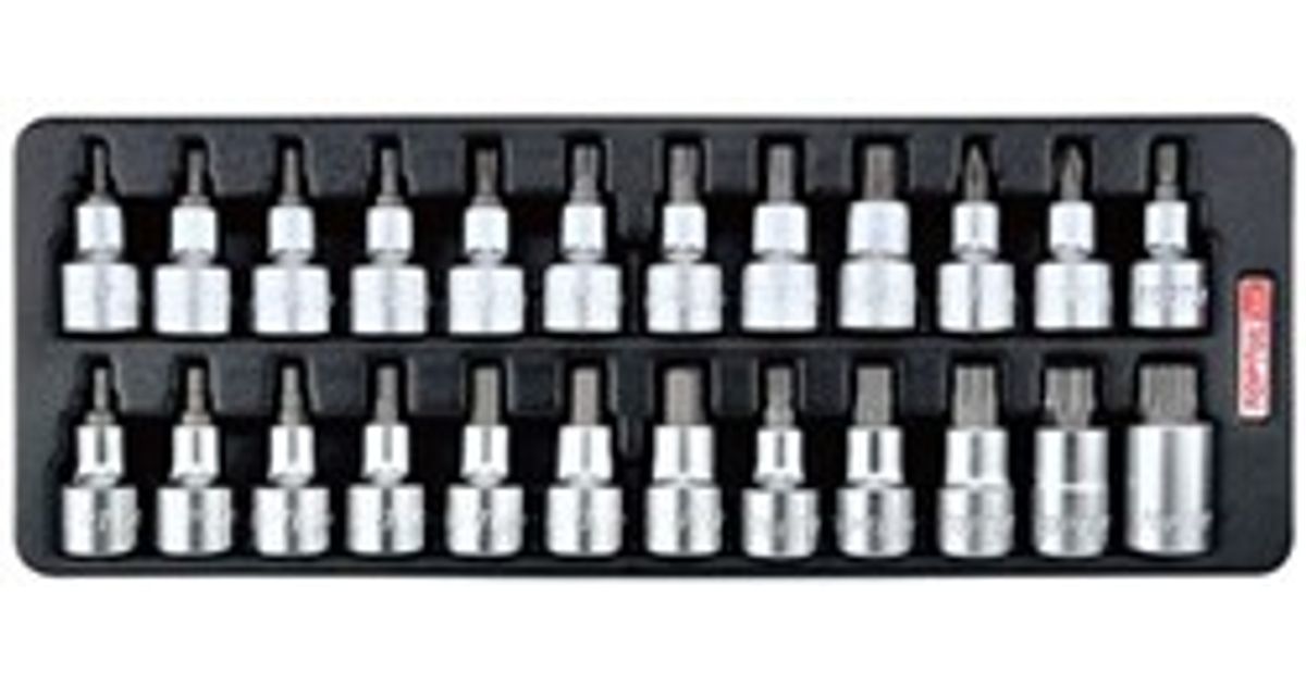 Komplekt tööriistakäru jaoks, padruni mõõt: 1/2", A2, plastist, tööriistade arv: 24 tk, HEX-otsik padrun (d) / Philips PH padrun (d) / Spline / XZN-biti padrun (d) / TORX padrun ot