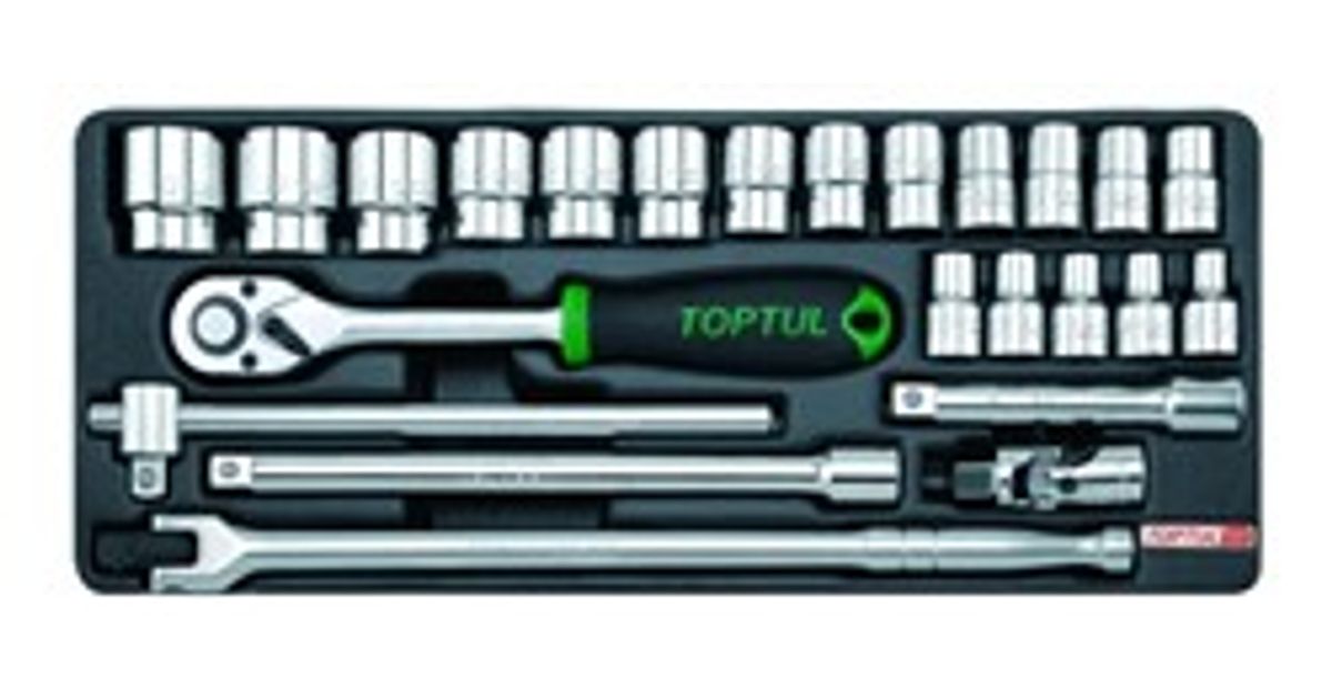 Komplekt tööriistakäru jaoks, padruni/ narre mõõt: 1/2", sahtli tüüp: B3, plastist, tööriistade arv: 24 szt., võtme tüüp: 6pt padrun(id) / käepide(d) / narre(d) / pikendusriba (d) / universaalliigend