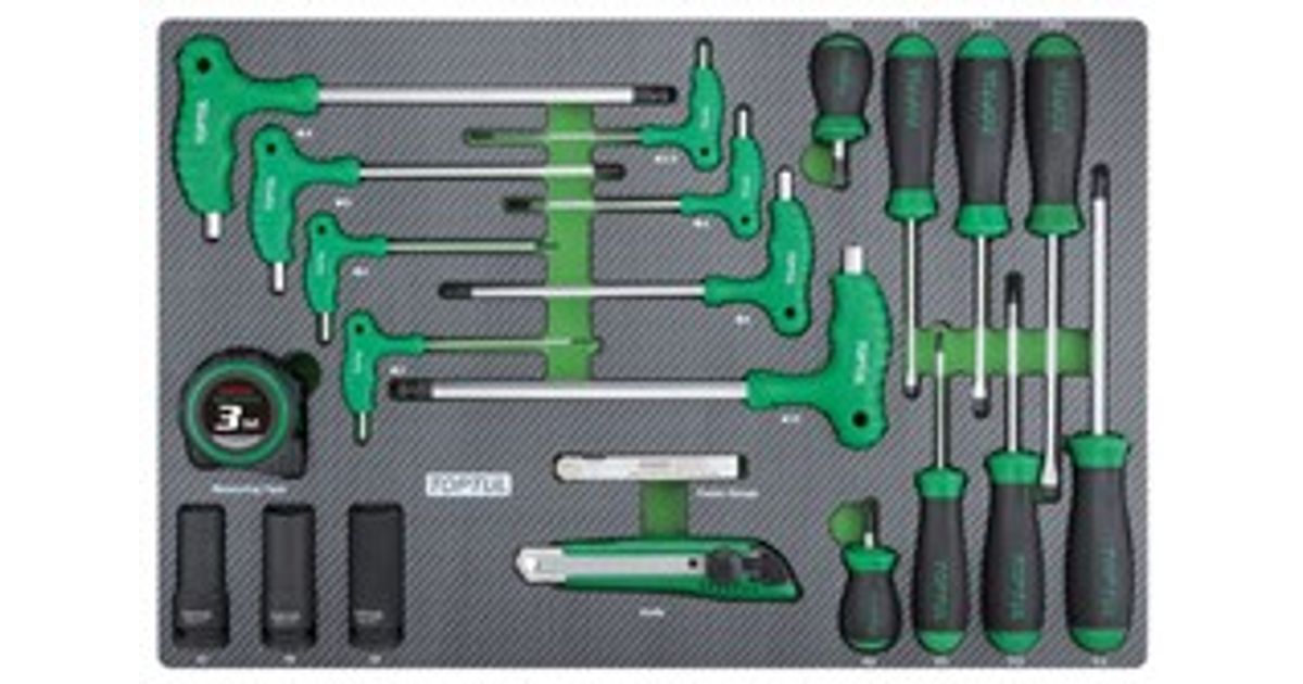 Komplekt tööriistakäru jaoks sahtli tüüp: D, vaht (SFS), tööriistade arv: 22 szt., võtme tüüp: hex võti(med) l-tüüp / philips ph kruvikeeraja (d) / kruvikeeraja(d) / löökpadrun (d) / mõõdulint (id) /