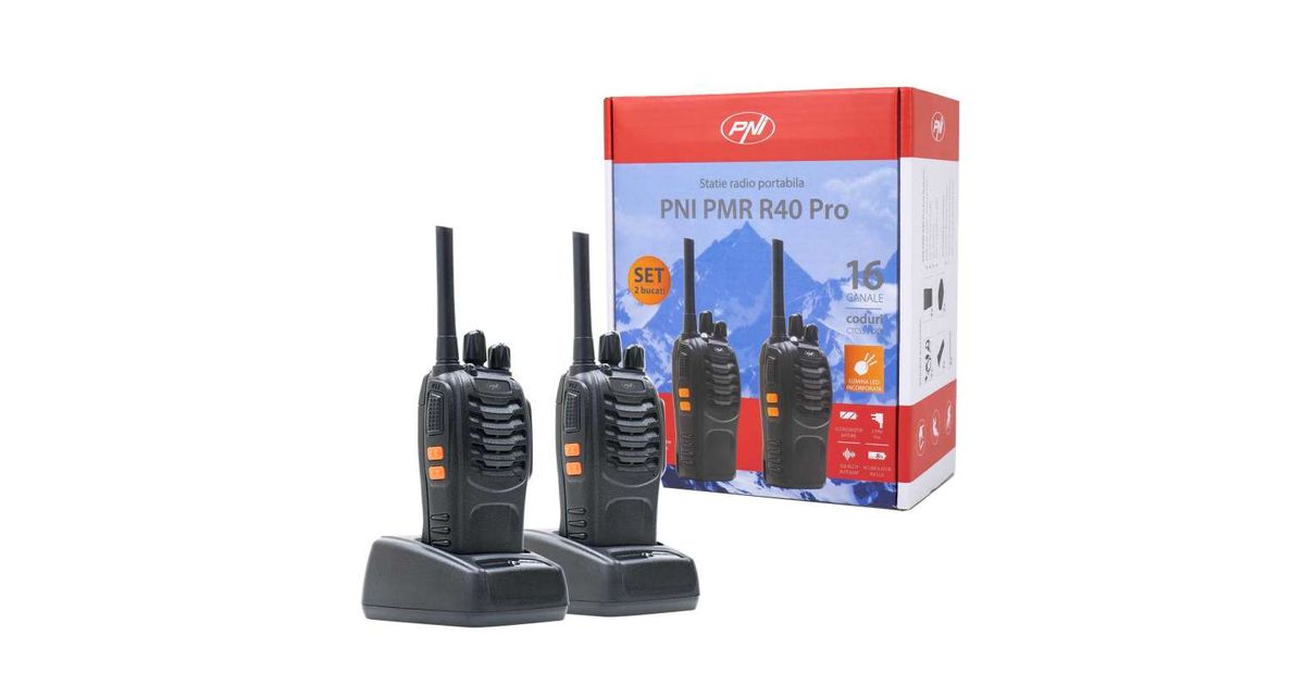 Komplektis 6 kaasaskantavat raadiojaama PNI PMR R40 PRO patareid, laadijad ja kõrvaklapid