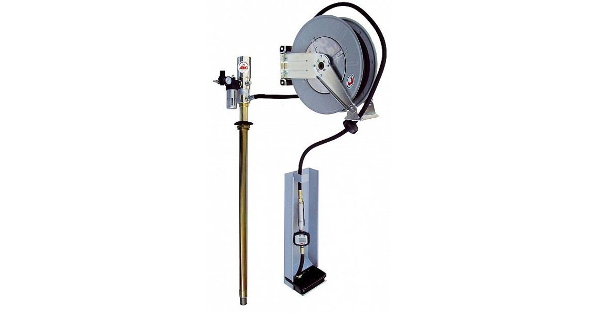 Pneumaatiline vaadipump 180/220 kg vaatidele. 5:1. 5-8 bar. 14 l/min. toru pikkus 940 mm. maksimum viskoossus SAE 250. õhukulu 115 l/min. Voolikurull 15 m. Digitaalne õlipüstol. Püstolihoidik. Reduktor.