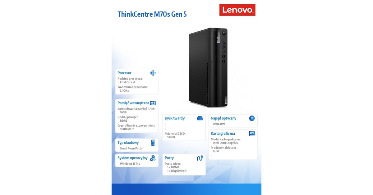 Komputer ThinkCentre M70s G5 SFF 12U8000APB W11Pro i7-14700/16GB/512GB/INT/DVD/vPro/3YRS OS