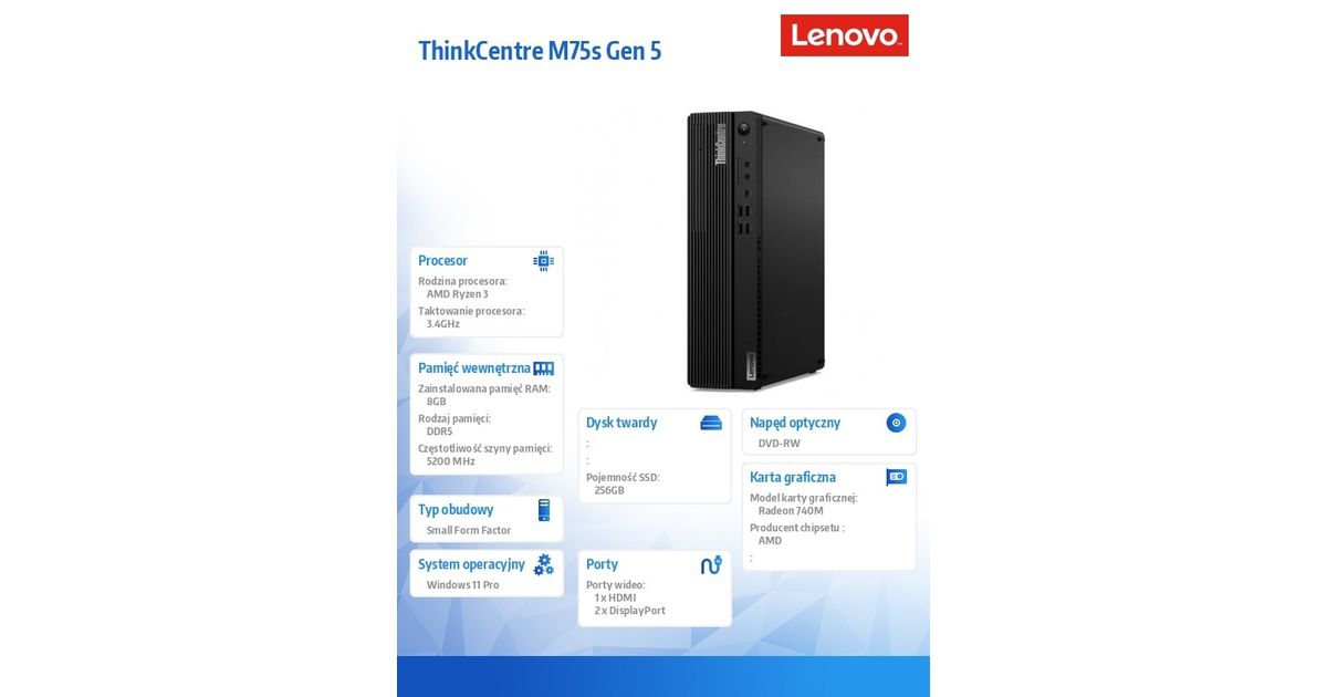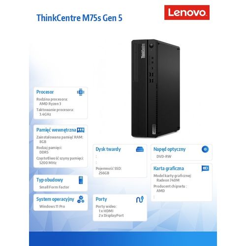 Komputer ThinkCentre M75s G5 SFF 12TA0000PB W11Pro 8300G/8GB/256GB/AMD Radeon/DVD/3Yr OS